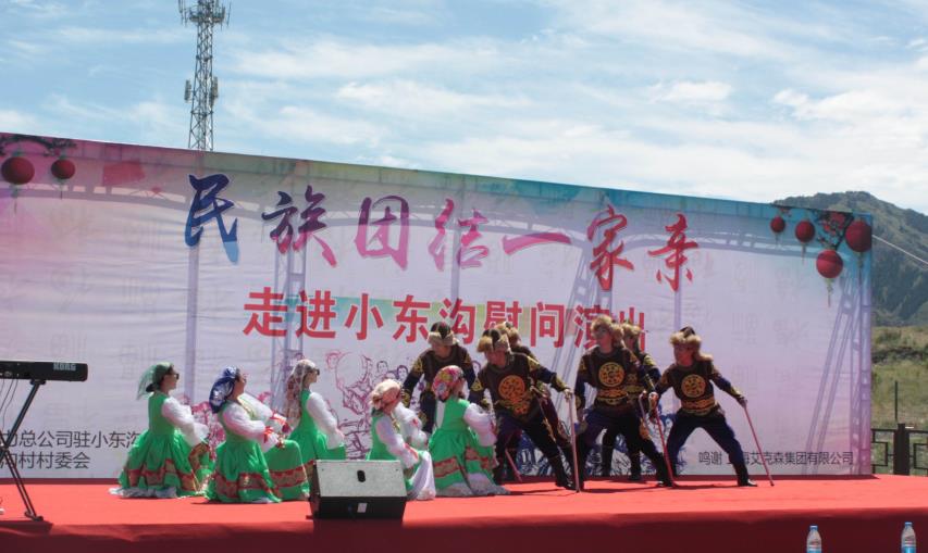 七月的南山陽光明媚,水西溝鎮(zhèn)小東溝村新建的文化廣場一大早已經(jīng)熱鬧非凡,村民不約而同的早早的來到這里忙碌起來了,幫助駐村工作隊和村委做起了灑水、擺凳子、音響設備等準備工作。由“訪惠聚”工作隊和艾克森聯(lián)合邀請的專業(yè)文化團隊,他們帶著精心編排的文藝節(jié)目和小東溝村各族村民,以“民族團結(jié)一家親”為主題的聯(lián)歡活動在這里舉行。全村民眾和60多對“結(jié)對親戚”歡聚一堂,唱歌、跳舞、雜技、說唱各種表演形式講述著民族團結(jié)的親情。