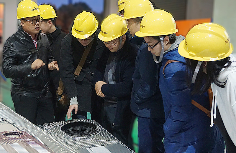 專家團(tuán)來到艾克森的生產(chǎn)車間,大型換熱設(shè)備在一如既往的車間忙碌生產(chǎn),并不斷的送往全國各地的客戶現(xiàn)場,除了參觀生產(chǎn)設(shè)備和工藝流程,艾克森技術(shù)人員在參觀過程中全程和專家們共同討論交流,在優(yōu)化生產(chǎn)工藝和提高產(chǎn)品的品質(zhì)方面得到了專家團(tuán)的很多建議,艾克森的智能化生產(chǎn)線和先進(jìn)的制作工藝贏得專家們的一致認(rèn)可,電泳和測試平臺等設(shè)備的投入是成為專業(yè)換熱設(shè)備生產(chǎn)商的必要條件。