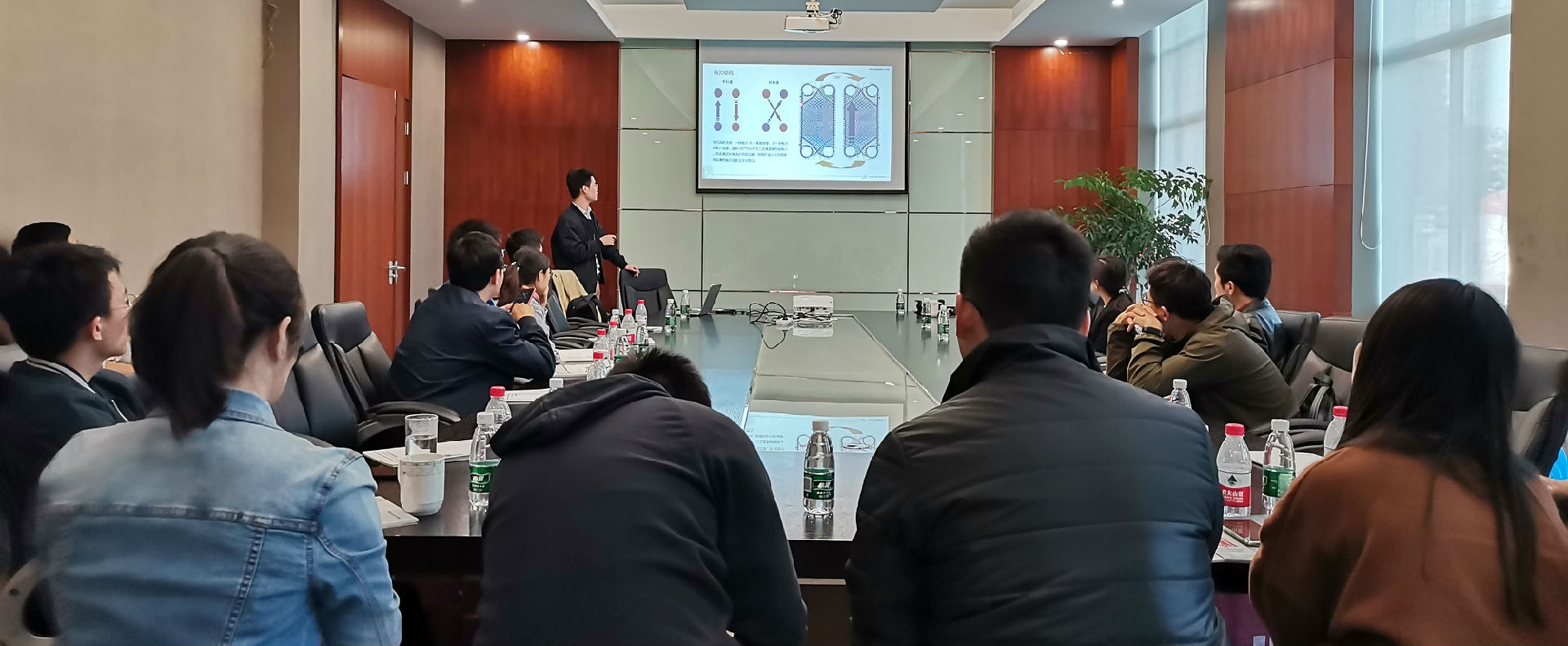 2019年10月31日,上海同濟(jì)院建筑設(shè)計(jì)研究院的暖通設(shè)計(jì)專家團(tuán)在曾主任的帶領(lǐng)下來(lái)到了艾克森太倉(cāng)機(jī)組工廠,隨行的年輕小伙伴們——設(shè)計(jì)師還參加了艾克森的換熱實(shí)踐課,課后大家一起參觀了艾克森太倉(cāng)換熱機(jī)組的整體生產(chǎn)工藝,了解了換熱機(jī)組從設(shè)計(jì)到加工制造和出廠測(cè)試的全流程和質(zhì)量控制點(diǎn)。艾克森上海團(tuán)隊(duì)全程參與了本次活動(dòng),技術(shù)人員通過(guò)全方位的案例視頻、產(chǎn)品動(dòng)畫、PPT和樣本等多種方式,系統(tǒng)的介紹了艾克森換熱設(shè)備產(chǎn)品的性能和產(chǎn)品應(yīng)用特點(diǎn),分享了艾克森換熱機(jī)組在不同行業(yè)的經(jīng)典應(yīng)用案例,還針對(duì)換熱機(jī)組在項(xiàng)目設(shè)計(jì)應(yīng)用中遇到的難點(diǎn)問(wèn)題與設(shè)計(jì)師團(tuán)隊(duì)進(jìn)行了深入的溝通和交流。