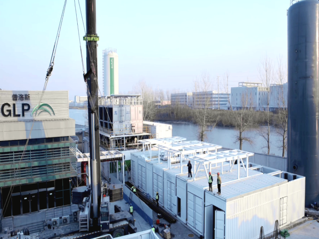 創(chuàng)新的采用“多集裝箱拼接式冷站方案”,打破了傳統(tǒng)預(yù)制集裝箱內(nèi)部的物理空間限制,從而滿足更大容量冷機(2200RT)的多臺N+1冗余運行,也實現(xiàn)了系統(tǒng)容量與交付速度的雙重突破,不僅極大提升了系統(tǒng)可靠性,更實現(xiàn)了從預(yù)制化撬塊到預(yù)制化箱式集成冷站的重大跨越。這種多箱體無阻擋拼接設(shè)計,充分挖掘了物流園區(qū)改造項目的空間潛力,在保證高可用的同時,大幅壓縮了建設(shè)周期,為行業(yè)提供了預(yù)制化技術(shù)規(guī)?;瘧?yīng)用的成功范本,開創(chuàng)了超大規(guī)模數(shù)據(jù)中心高效快速、高質(zhì)量建設(shè)的新路徑。